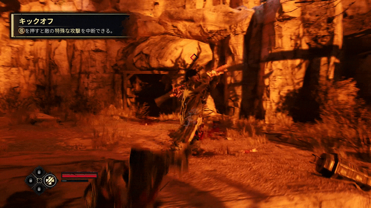 だが、敵の予備動作中に"キックオフ"攻撃を当てれば敵がよろけ、中断できる。