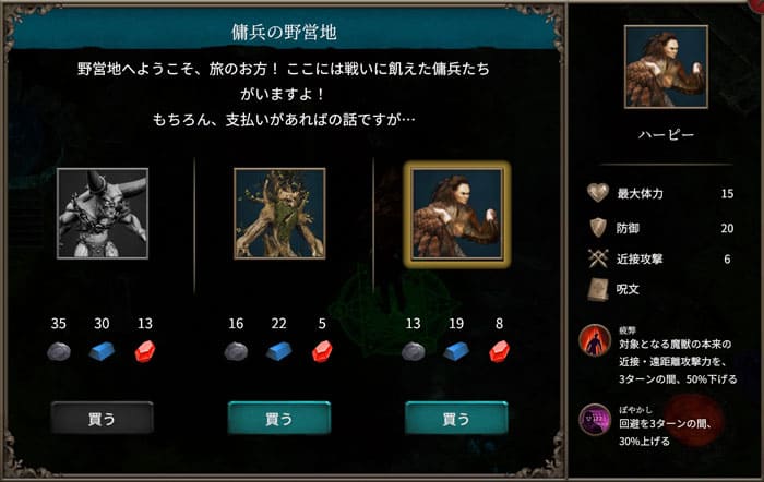 ボーナスを選んで次のターンへ進むと体力やマナの回復ができます。