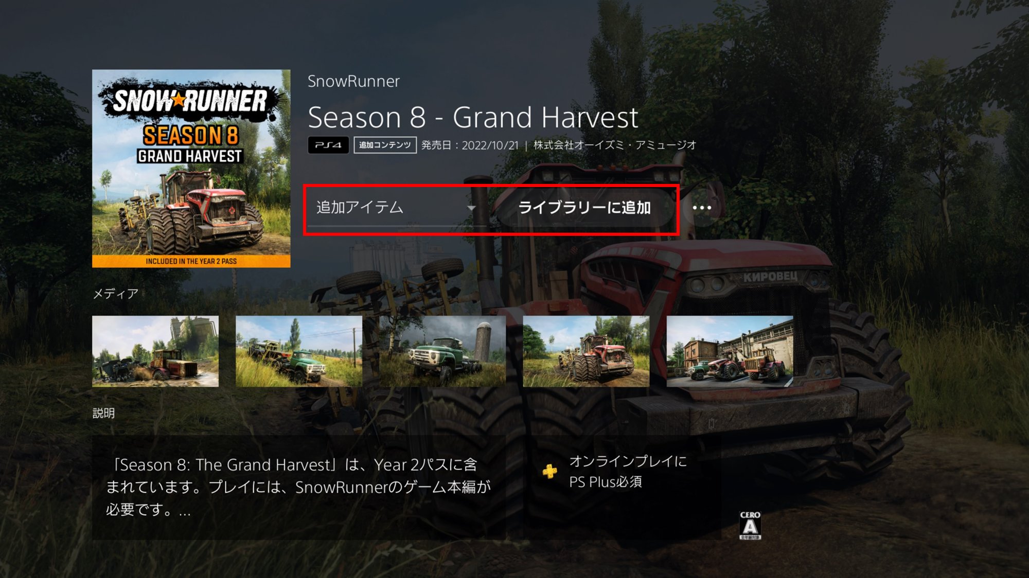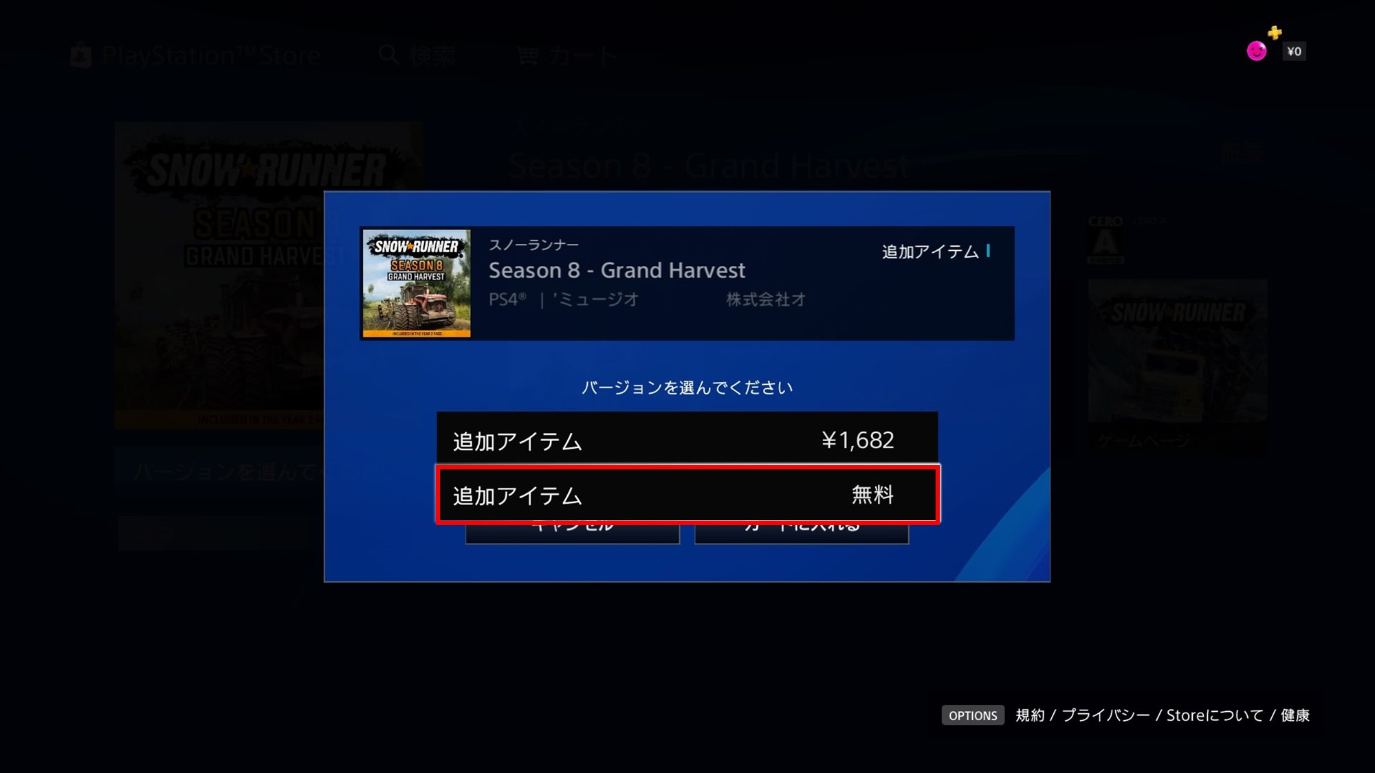 PS4『スノーランナー』にて現在配信中のDLC「Season 8 – Grand Harvest」が、シーズンパスを所持していても表記が有料になるという不具合が発生しております。
